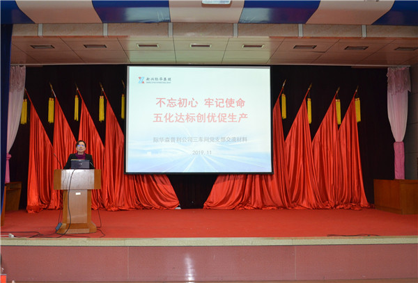 在党支部建设论坛交流发言中,森普利公司三车间党支部书记白杰做了题为《不忘初心、牢记使命,五化达标创优促生产》的交流发言,从创品牌促生产、典型引领发挥作用、党建活动有特色、党旗飘扬在一线四个方面对支部工作进行了详细汇报。