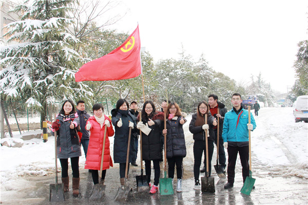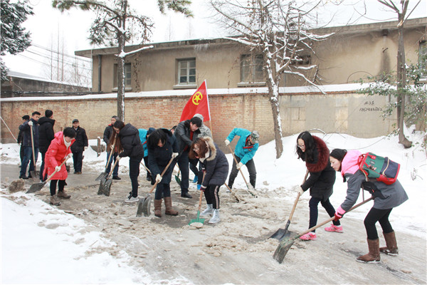 26日清晨,南京际华3521公司青年突击队以“雪”为令,在公司团委书记刘倩的带领下进行扫雪除冰活动。在清扫完公司内部路面之后又到外部市政道路上清除积雪,除雪现场团旗飘扬,青年突击队队员不畏严寒、分工合作,经过一个多小时的努力,很快将主要干道上覆盖的积雪清理完毕。