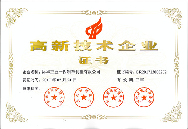 近日,际华3514公司收到由河北省科学技术厅、河北省财政厅、河北省国家税务局、河北省地方税务局联合颁发的《高新技术企业证书》及奖牌,有效期为三年。