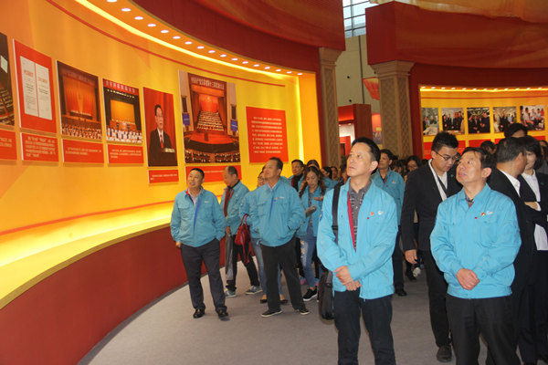 党的十八大以来,在以习近平同志为核心的党中央坚强领导之下,党和国家事业发生了历史性变革,一个个发展成就、一项项科技成果让人倍感自豪和激动。由江苏省委宣传部举办的“砥砺奋进的江苏”大型主题图片展在南京国际博览中心举办。“砥砺奋进的江苏”大型主题图片展以开启“两聚一高”新征程、建设“强富美高”新江苏为主题,分为“序篇”、“改革篇”、“创新篇”、“富民篇”、“生态篇”、“法制篇”、“文化篇”、“党建篇”和“结语”等9个部分,千余张图片及一批的高科技产品模型集中回顾了江苏各行业五年来砥砺奋进的发展成果, VR等最新观展技术也增强了观展的互动性和体验感。大家在认真地观看了展示图片及实物模型,听取了解说员的详细讲解,纷纷赞叹对于十八大以来取得的成绩,表示一定会以砥砺奋进的精神立足岗位、艰苦奋斗、不断创新,积极投身“富强中国、富强江苏、富强际华”的建设中,以饱满的精神和务实的行动迎接党的十九大胜利召开。