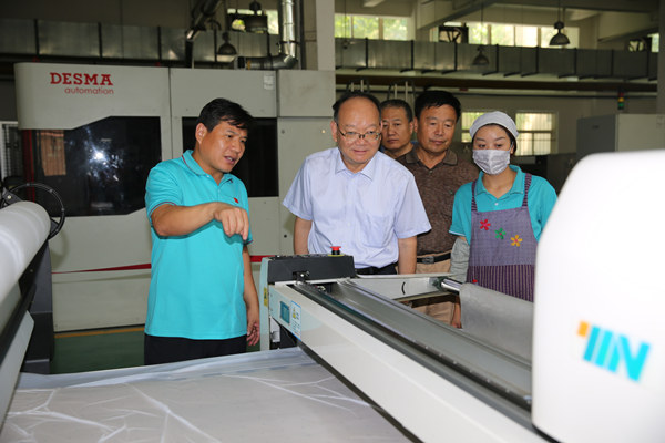 7月18日,中国纺织工业联合会党委书记高勇、陕西省纺织工业联合会会长田福星、副会长严家民一行莅临际华3513公司调研。在该公司党委书记、执行董事段银海、党委副书记张亚军、党委委员尉隽、樊永康的陪同下参观了生产现场,看望了高温下辛勤工作的广大一线员工。