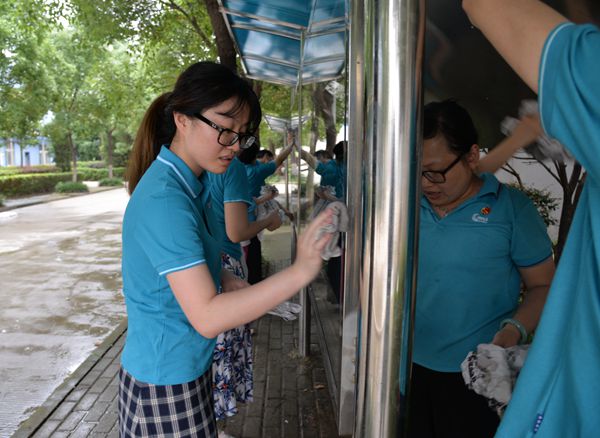 6月22日下午,酷热难耐。公司党委副书记杨汉武、党群部部长唐超、工会干事、分会主席及党的积极分子近30人顶着烈日,冒着32度的高温,将厂区内的20块室外宣传橱窗冲洗了一遍,营造出干净整洁的厂区环境。