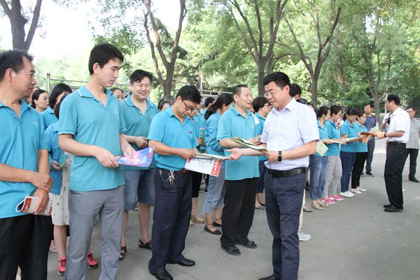 安全生产月咨询活动以宣贯党和国家的安全生产方政策法规及相关安全生产知识为主线,准备材料共计15类,300余份。活动伊始,三五一四公司工会主席张志永、上庄镇政府韩书记分别做了重要讲话,随后,张志永主席同上庄镇政府韩书记、武镇长一起给职工们发放了安全文化手册、安全生产条例等宣传材料。最后,张主席做总结发言,他强调:安全生产工作是一项长期而艰巨的工作,需要全厂参与、各方支持,公司所属各单位负责人都要司其职、负其责,强化教育培训力度,普及安全生产知识,落实安全生产主体责任,为创建“平安一四,和谐一四”贡献力量。