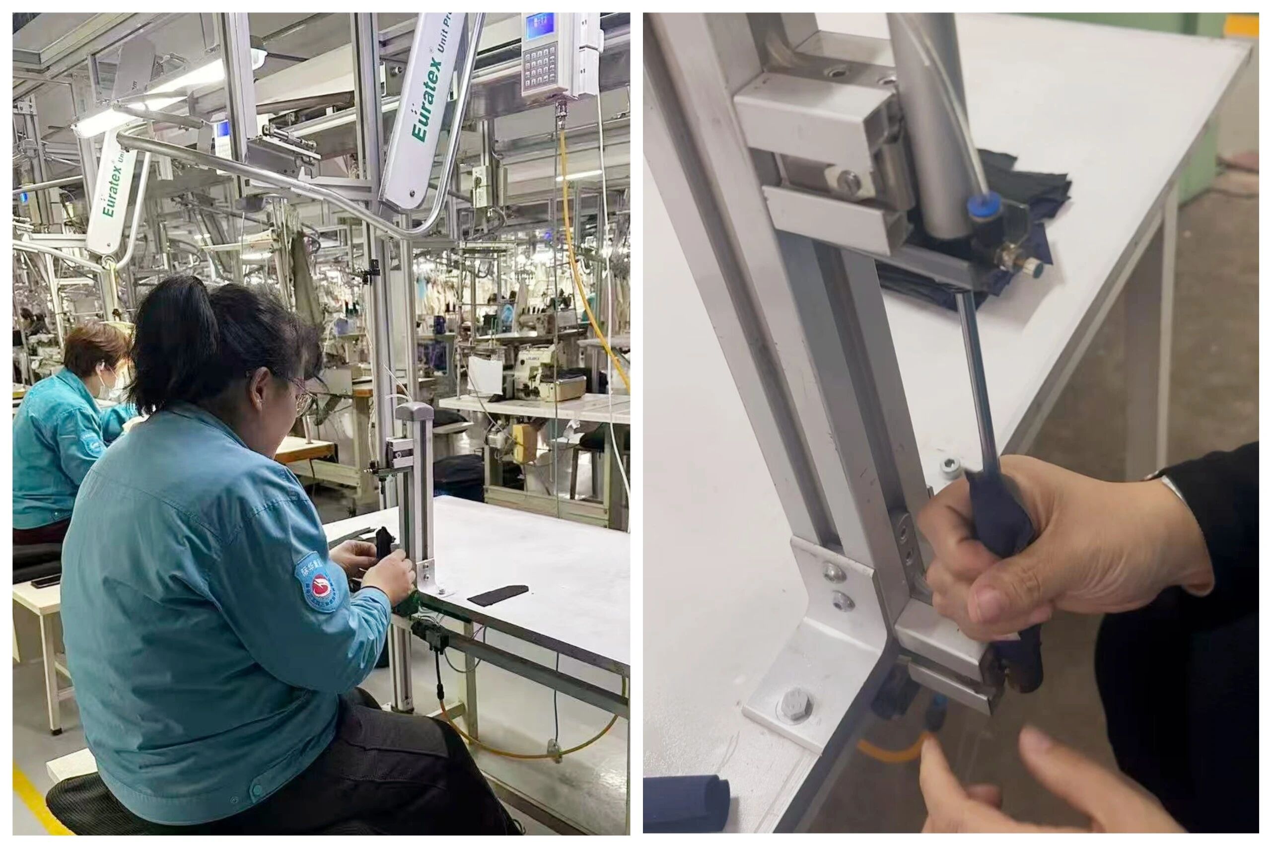 改善后,整个过程机械动力替代手工用力,将传统的“手动试探性翻套”转化为“机械精准性推送”。使肩袢翻套时间较手工操作大大缩短,提升了工作效率;同时借助翻套筒和直线驱动器自由端的配合工作,使肩袢在翻套过程中受力均匀,保证了肩袢的加工质量。