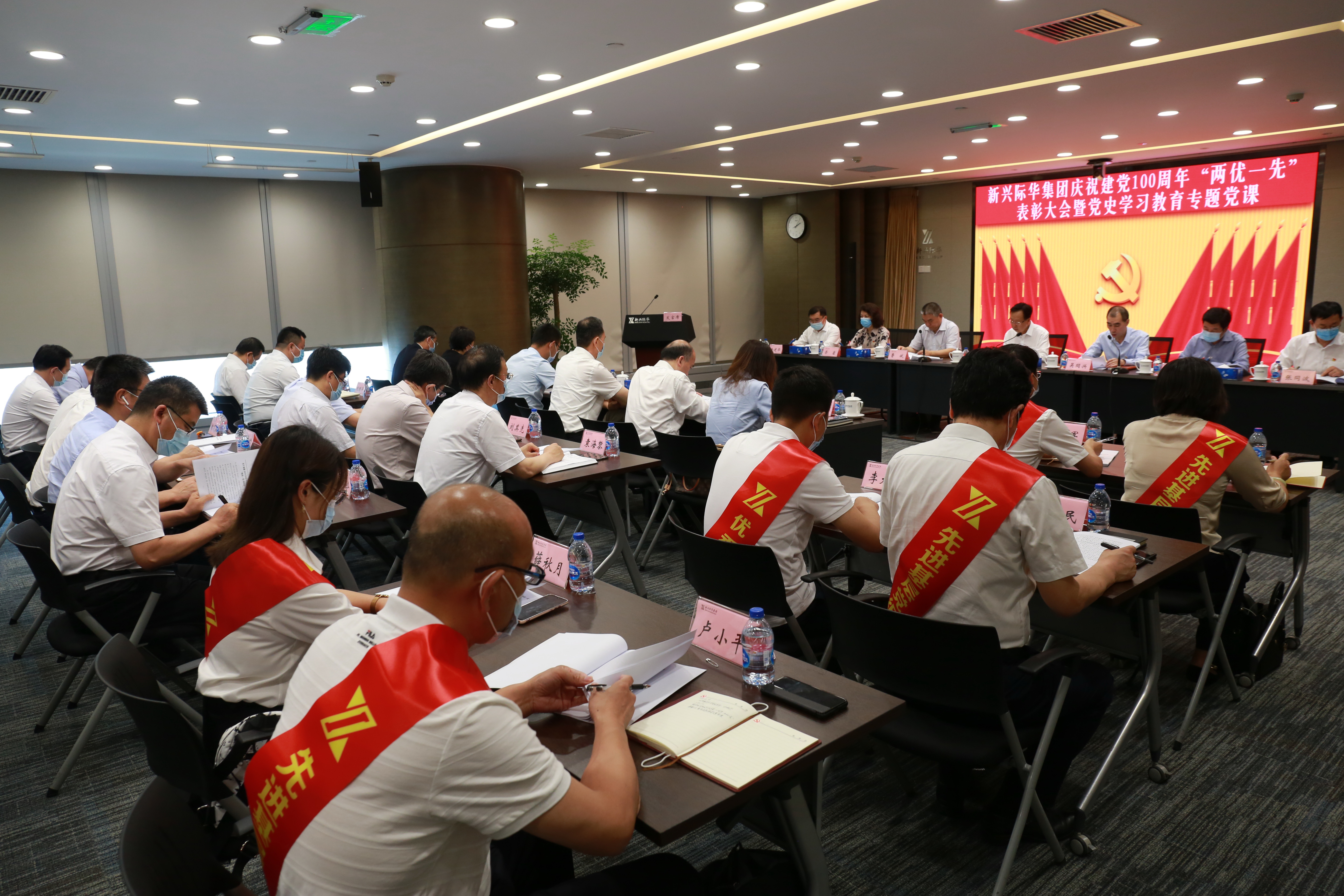 6月28日,新兴际华集团举办庆祝建党100周年“两优一先”表彰大会暨党史学习教育专题党课,进一步学习领会习近平总书记重要讲话精神,表彰集团公司优秀共产党员、优秀党务工作者、先进基层党组织,命名集团公司红色教育基地。贾世瑞(全面主持集团党委、董事会、经理层工作)出席会议并讲授党史学习教育专题党课。中央企业党史学习教育第七指导组副组长巴清宏,成员张宏余、曲晓梅、王久福现场指导。集团公司党委常委、副总经理吴同兴,党委常委、纪委书记王兆刚,党委常委、总会计师荣岩,党委委员、副总经理张同波,党委委员、副总经理徐建华参加会议,党委常委、副总经理鲁斌主持会议。